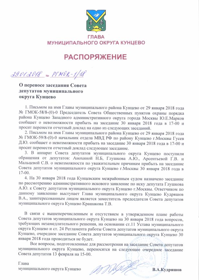 Информация главы муниципального округа Кунцево. - О постоянных комиссиях СД МОК