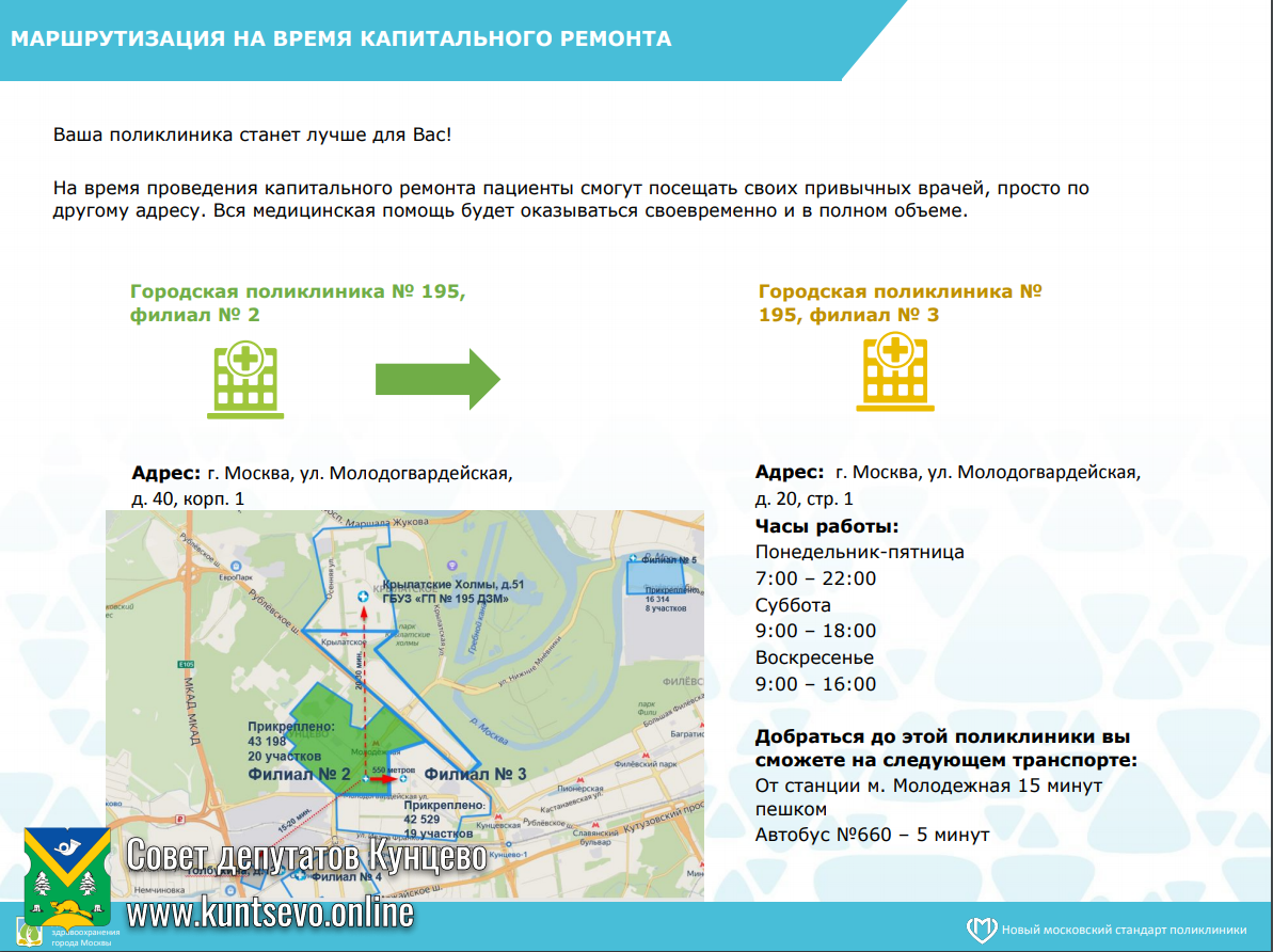 О закрытии на капитальный ремонт 2-го филиала 195 поликлиники в Кунцево