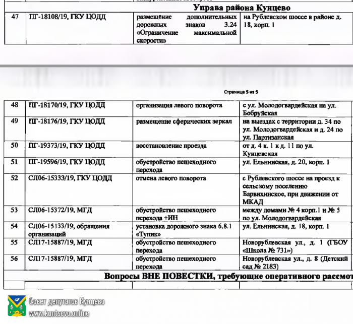 На комиссию по безопасности дорожного движения вынесены вопросы Кунцево Комиссия пройдёт 23 декабря. Прошу присылать ваши замечания.Дополнительных материалов пока нет. Запросил в Управе. безопасность — 20.12.2019 14:14 1268 Алексеев Алексей 1 комментарий RSS Написать комментарий Алексеев Алексей 23.12.2019 10:43 # ↓ Материалы доступны тут Ответить Ваше имя: E-mail для ответов: Загрузка...