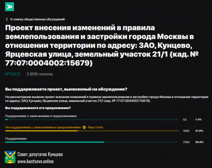 - Активность жителей сделала голосование по данному проекту незаурядной задачей.. Жители Кунцево МОЛОДЦЫ! Именно благодаря активности жителей стал столь очевидным подлог результатов голосования.