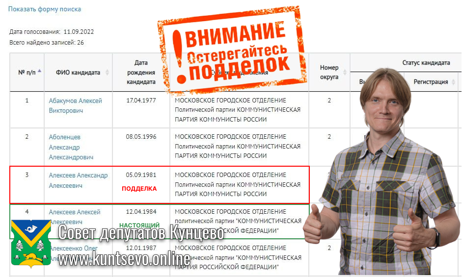 Провластный кандидат-единоросс договорился со спойлерами КПРФ - "Коммунистами России", чтобы они выдвинули ее сотрудника по своим спискам. И всё это, чтобы попытаться обмануть избирателей, которые придут проголосовать за настоящего Алексеева Алексея.