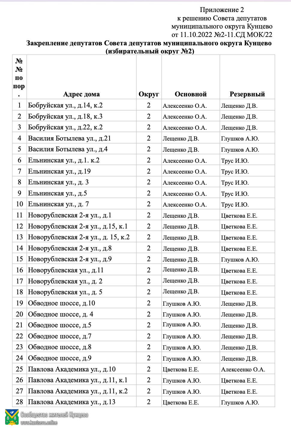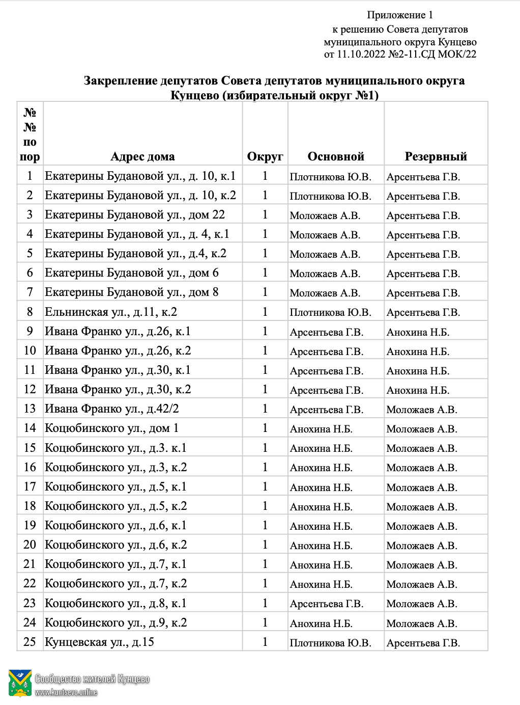 Новые депутаты наконец-то приняли решение о своем закреплении за домами в Кунцево.