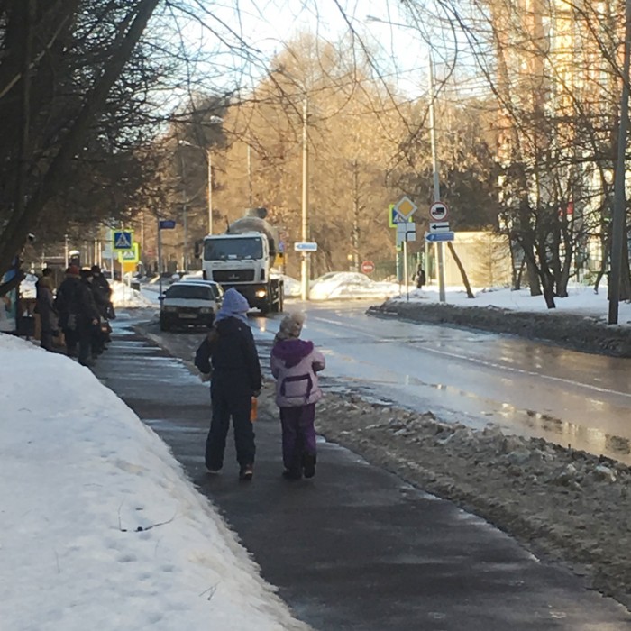 Хотелось бы еще отметить несколько моментов. Внутриквартальный проезд не предназначен для движения грузового транспорта. Очевидное нарушение правил. Также, не предназначен для остановки общественного транспорта – еще одно нарушение. Одни нарушения. Насчет расчетов ЦОДД …. Сначала надо восстановить движение согласно правилам, а именно — перенести автобусную остановку на улицу Маршала Тимошенко, что бы люди не стояли вплотную к проезжей части внутриквартального проезда, затем направить грузовой транспорт туда, где он должен двигаться, а именно по улице общего назначения – Маршала Тимошенко. А вот после этого надо измерять что и как. Это Вам любой суд объяснит. И еще пару слов о детях, выбегающих на проезжую часть в 11 квартале. Соседи, а Вам неизвестно, что дети должны находиться в сопровождении взрослых? Ну да ладно… может они беспризорники. Так вот посмотрите, куда выбегают дети с 24 дома…. У этих детишек вообще нет ничего, кроме близлежащего внутриквартального проезда. Скажу Вам больше, дети бояться переходить внутриквартальный проезд, потому что грузовики их пугают. Лично перевожу детей за руку через внутриквартальный проезд. Так что соседи попахивает это все эгоизмом с вашей стороны ( И насчет соснового леса… зачем нам сосновый лес, если у нас есть прекрасная березовая роща, которая также как и сосновый лес не оборудована( так что надо разбираться с ситуацией! А напоследок соседи фотография вам для размышления, сделана сегодня…