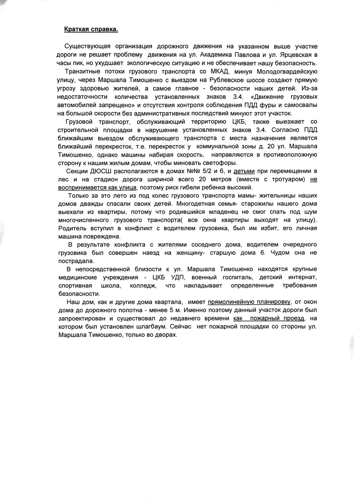 4. Остановка общественного транспорта находится в нарушение правил на внутриквартальном проезде, а не на улице Маршала Тимошенко. Жители 2 квартала пересекают опять же внутриквартальный проезд.