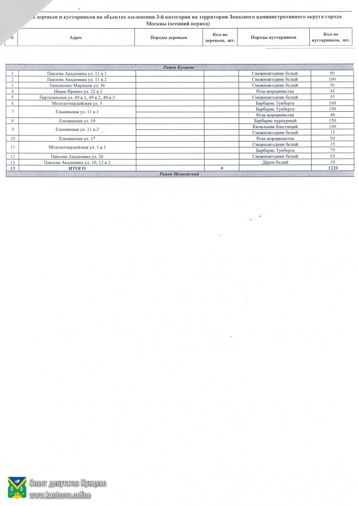 - 1. Согласовать адресный перечень озеленённых территорий 3-й категории на осенний период 2019 года, на которых планируется высадка зеленых насаждений в рамках акции «Миллион деревьев» (приложение).