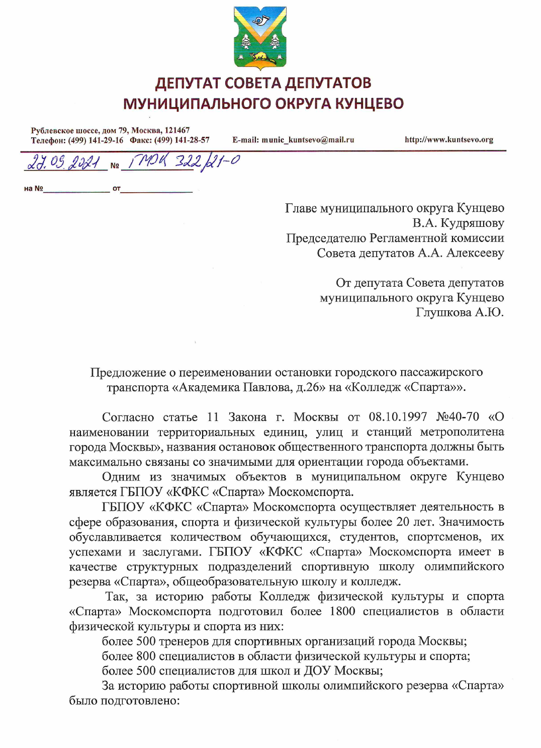 О переименовании остановки городского пассажирского транспорта на "Колледж Спарта" от: 19.10.2021 Решение: Докладчик при вынесении: Глушков А.Ю. Дополнительные материалы: ИконкаНазвание файлаРазмерСкачанСкачать 13-35-52-Vopros_19.1.pdf_-_Adobe_Acrobat_Pro_DC.png(651.2 КБ)11 разСкачать Заседания: СД МОК-74 Заседание Совета депутатов Регл.: 0 минут Совет депутатов Кунцево 1015 Алексеев Алексей Комментарии RSS Написать комментарий Нет комментариев. Ваш будет первым! Ваше имя: E-mail для ответов: Загрузка...